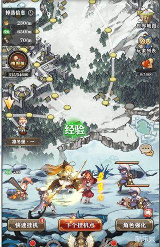 万一战力不足,被dalao按在地上摩擦该怎么办?那就只好继续放置练级,提升角色属性咯!如果你想要快速获得提升的话,可以选择快速挂机,瞬间获得120分钟的收益,让你的成长速度堪比秋名山上的飙车老司机!而击败BOSS后可以前往新的风景,开启下一个战斗点!当情报值显示满格时,还可以去打开新世界的大门,来一发探险玩法!漫漫冒险路上不免有些许寂寞孤单,不妨点开聊天频道和陌生人畅谈,放置交友两不误,分分钟认识到交心的老铁哦!