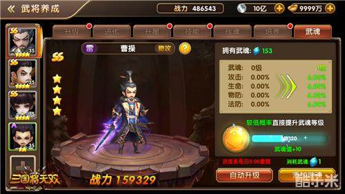 通过游戏那丰富的多线养成玩法,主公可轻松挖掘武将潜力,即便廖化上阵也能勇冠三军,使五虎上将仰慕。神将们可通过武魂、战魂系统全面提升属性,更可装备神兵使技能“觉醒”,让必杀技威力加倍提升,对敌军造成多重负面效果!