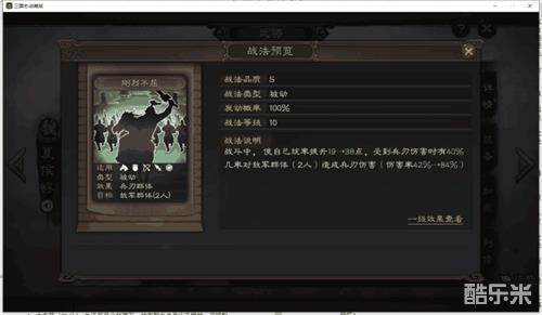 8. 李儒(75分):自带战法鸩毒高概率发动,降武力降统率,菜刀队的强力辅助,也有不俗的单点爆破能力,配合沙暴战法能使我军物理输出更快打出高伤害,传承战法四面楚歌也是优秀的输出战法,建议培养或拆解。