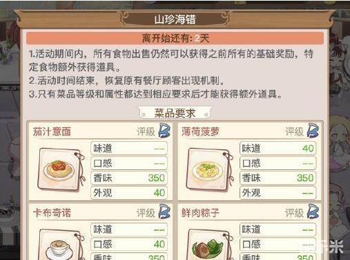 2. 如果要高额餐厅收益就无视活动,直接挂极限料理(菠萝汁/黄油烤馒头等)