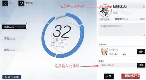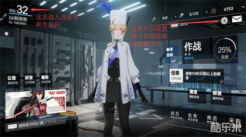 点击右边的齿轮就能进入设置菜单,可以调节音量,画质以及键位啦。另外,就是左边的个人信息界面,进入之后可以改昵称和输入兑换码