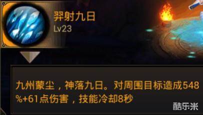 【羿射九日】:范围群攻技能,由于释放的是范围伤害,敌人不走过来,基本打不到,释放时也是不能移动了,小编只好放弃了;