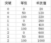 每次突破增加40点科技值