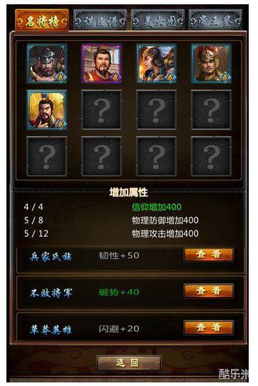 天命百将图分:文臣、武将、君主、丽人等四个系列。每个系列的卡牌收集到一定数量后,将会激活附加属性。