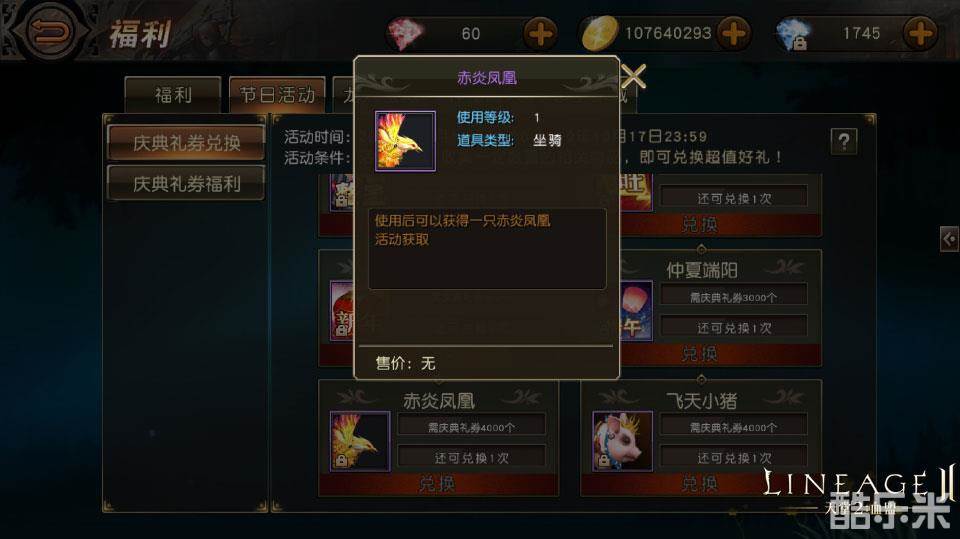 庆典礼券兑换活动一般2周更新一次,每次更新后,可兑换的奖励会稍有不同。通过每日在线和组队副本等日常活动来获取庆典礼券,积攒庆典礼券到对应的页签中换取你所需要的奖励,从护身符到声望勋章,称号礼盒到时装兑换券,可谓是应有尽有。并且此活动长期有效,勇士们可将其视为日常活动来参与。限量坐骑彩球小飞艇现已加入豪华套餐,等待你来兑换噢~