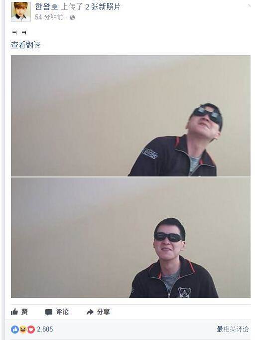 英雄联盟职业选手SKT Peanut小花生在脸书上晒出了教练Kkoma的照片。
