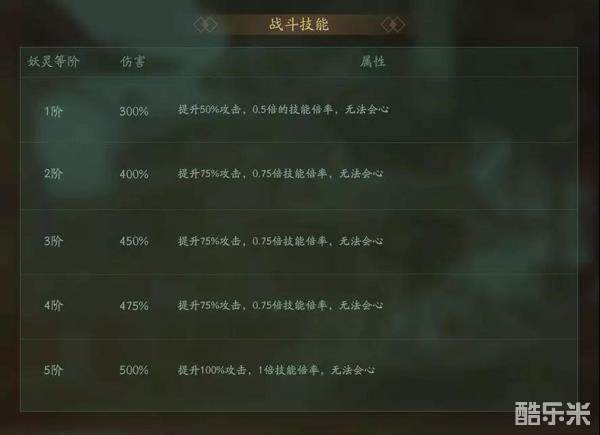 1阶夕辉出阵时,可提升50%攻击,0.5倍技能倍率,无法会心;达到2至4阶时,则可提升75%攻击,0.75倍技能倍率,无法会心;达到满阶时,更可提升100%攻击和1倍技能倍率,无法会心。鬼魇直扑对手,赤色偃月刀下,又将增添多少傲人战绩?