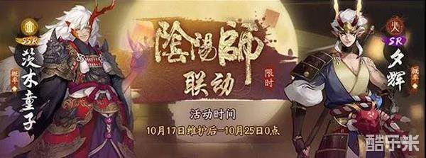 “神都X阴阳师”联动活动开启后,夕辉已追随茨木童子加入“阴阳师联动”卡池和“阴阳师联动”仅妖灵活动召唤池,降妖师在10月25日0点前召唤还可享受概率提升;截止10月31日14时,“神都X阴阳师”特供礼包,选购好礼包后开启即可获得联动SR碎片任选礼包、活动唤灵符等奖励。