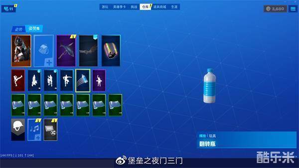 翻转瓶为本赛季季卡第37阶奖励动作,玩家需要进入仓库使用相关动作。