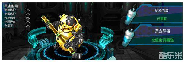 会员专属涂装是达到会员相应级别后赠送的礼品,无法以其他方式获得。其自带5种共计13个百分点的加成属性,是游戏中最顶级的涂装。
