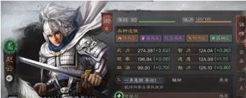 分析:赵云的自带战法可以为他提供持续免疫控制的效果,让他在战斗中能够更加稳定的发挥。同时在得到战法的属性加成后赵云的整体属性变得更高,武力总值甚至超越了吕布。依靠高额的统率属性再搭配输出战法就能让赵云发挥出攻守兼备的特性。