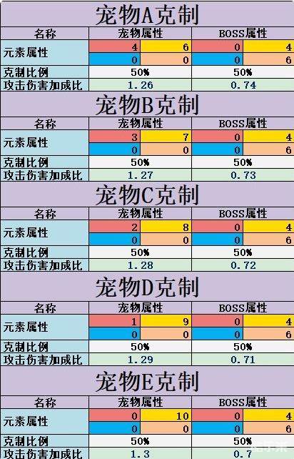 计算公式:1+((宠火*王电+宠电*王地+宠地*王冰+宠冰*王火)-(王火*宠电+王电*宠地+王地*宠冰+王冰*宠火))*0.01*克制