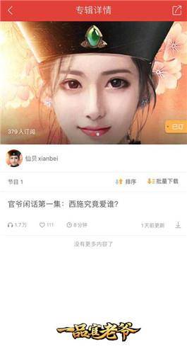 当然,大家若有自己常用的电台,也可以试着搜索“官爷闲话”收听我们的节目呢!若是觉得小姐姐讲的故事听不够,福利也不够的话,大家也可以移步关注公众号【一品官老爷手游】,打开最新一期推文,就可以参加本次听电台送礼包活动!各位参与活动的官人只需在电台内容下评论,就有机会获得游戏专属大礼包一份哦!