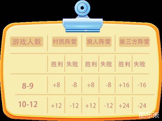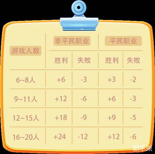 2) 若该玩家所在阵营游戏失败,则该玩家将扣除相应积分。