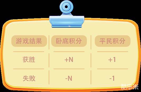 完成“杀手游戏”、“狼人游戏”、“炸弹猫”、“谁是卧底”的胜利,即可在游戏结束后获得游戏积分,但如果游戏失败,则会扣除相应积分。