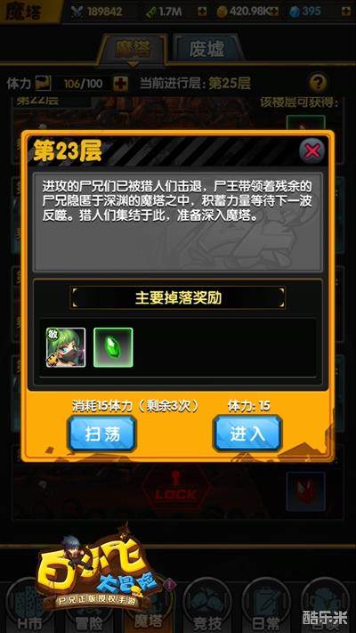 玩家在探索魔塔的过程中,除了能够在地图上拾取经验、金币、魔石等奖励外,完成任务也可以获得猎人碎片和珍贵的装备材料。而完成每一层的全部任务更能开启该层的扫荡资格,轻松获取全部奖励!