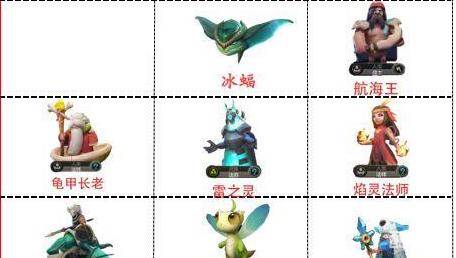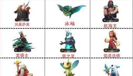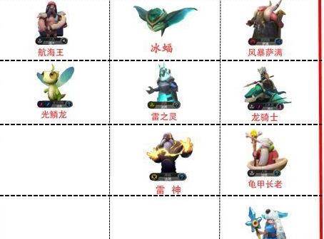 冰蝠、航海王、焰灵法师、魔力之源、龙骑士、雷之灵、龟甲长老、光鳞龙