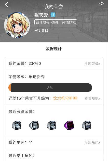 【篮球之神 APP荣誉系统】