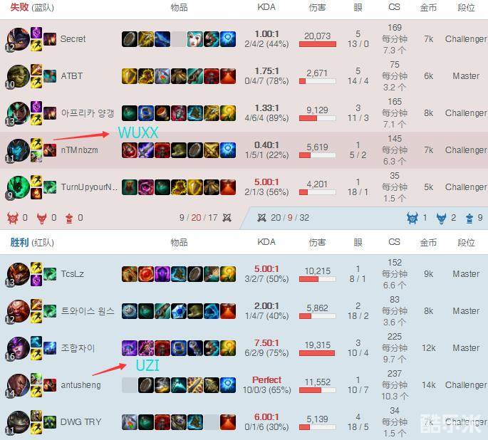 近日,无心在韩服单人排位赛中偶遇Uzi,两人在下路正面对线,以凶狠打法著称的Uzi在该场比赛中成功的打爆了无心,Carry了队伍。