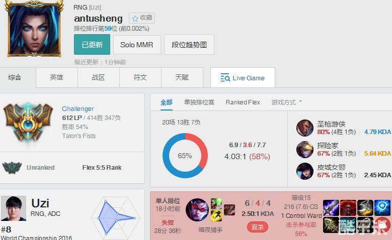 但实际上,无心的个人实力跟Uzi是不相上下的,两人现在韩服的排位分都很高,都位于王者前100名。