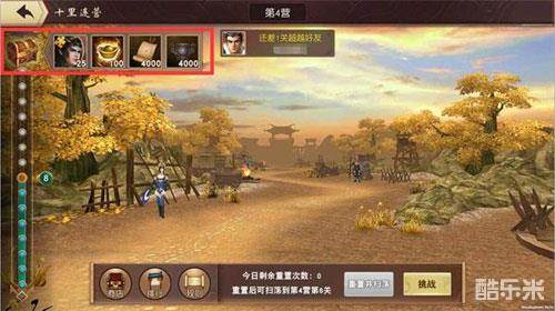 《一骑当千2》“十里连营”中,当玩家达到一定的层级后,第二次挑战就可以直接扫荡到未通过关卡的前一关。扫荡的加入在为你省时省力的同时,还可以更便捷地赚取大量的奖励。
