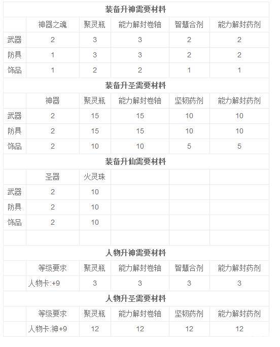 针对新人对进阶材料不太情况,材料获取也不明确,特出次材料篇,供新人明晰获取途径和升阶数量。