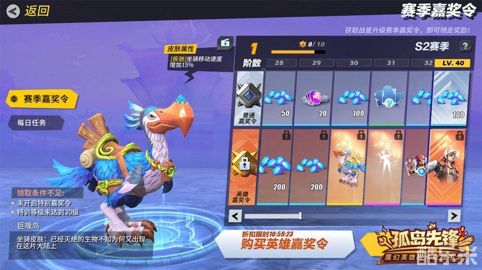 全新赛季有全新嘉奖令相伴,本期嘉奖令同样有多种版本供先锋官们选择,更有丰富奖励等你解锁。其中夜之魔女传奇皮肤“戏班明星”、七海霸主传奇皮肤“厄运草人”、坐骑传奇皮肤“巨喙鸟”造型惊艳酷炫,让你在竞技场上光彩更胜一筹。此外还有英雄能量、点券、秘宝钥匙等奖励,让挑战升级畅通无阻。