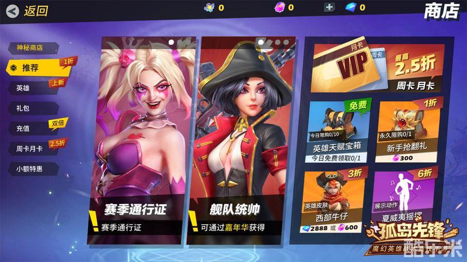 “新”内容如潮而至,商城货架当然不能落后。新增的新手抢翻礼,为玩家送上密林游侠皮肤“西部牛仔”和舞蹈动作“夏威夷摇摆”,让西部大漠风情与海洋阳光气质并肩出现。此外更有全新皮肤折扣礼包,购买后可获得七海霸主、暗影舞者、夜之魔女等史诗皮肤,为你的英雄们丰富衣柜。