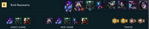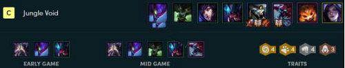 卡莎在现在的版本中最妥的就是配合虚空的阵容来打,现在走纯虚空的阵容配合六刺客能打出高额的输出效果,不过卡莎作为五费卡追高费比较难所以一般不吃装备可以给到卡萨丁神装让卡萨丁去充当主C的牌进攻效率也非常的高,卡萨丁的进攻、爆发的效果非常强。