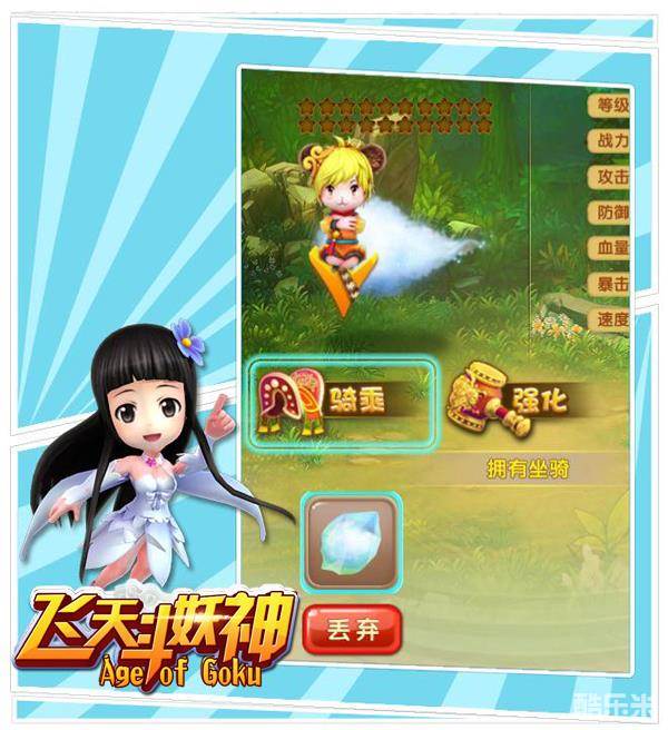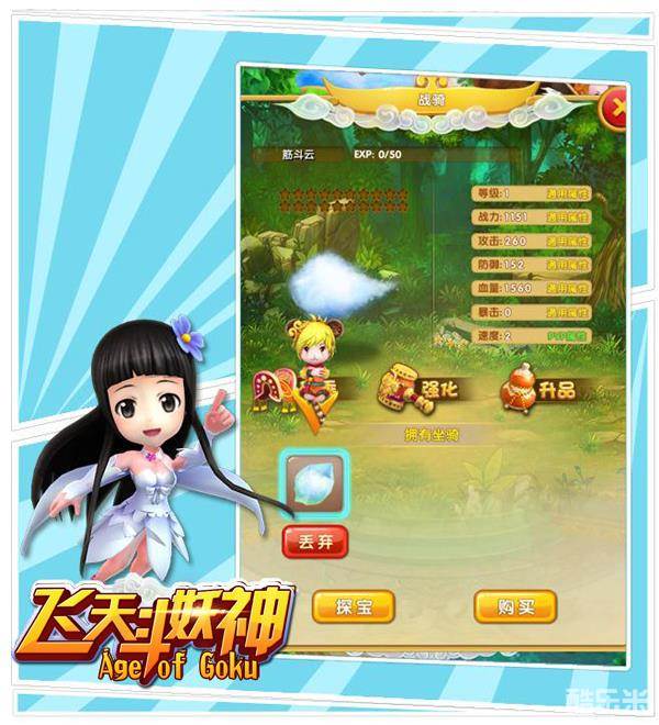 会使用金箍棒,背包之后,接下来悟空将教会玩友们如何使用刚刚获取的筋斗爬云。点击战骑按钮,即可打开战骑界面。