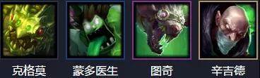 首先剧毒英雄目前一共有4个,分别是掠食者深渊巨口-大嘴、狂战士祖安狂人-蒙多、游侠瘟疫之源-老鼠、炼金术师-辛吉德。