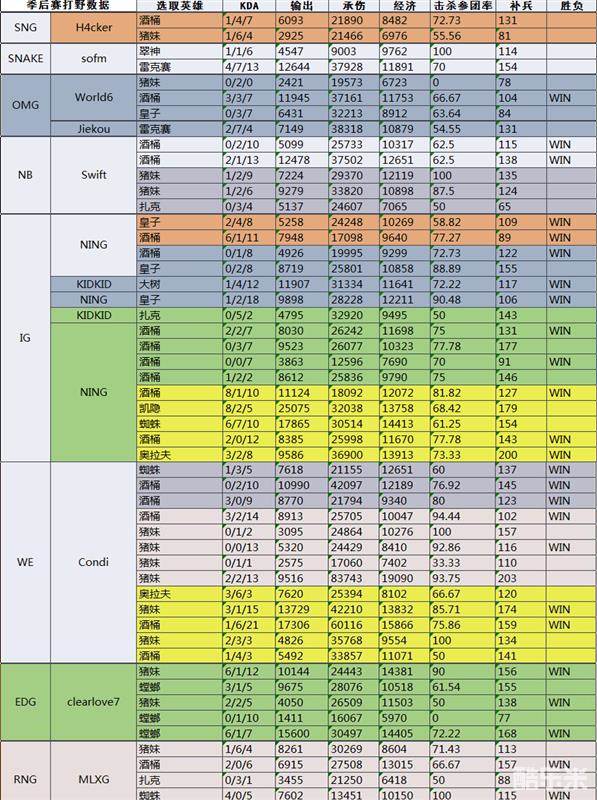还有就是刷刀和经济可以看出在野区的控制视野,红蓝buff能力,大龙之类的我没统计,将就一看吧。