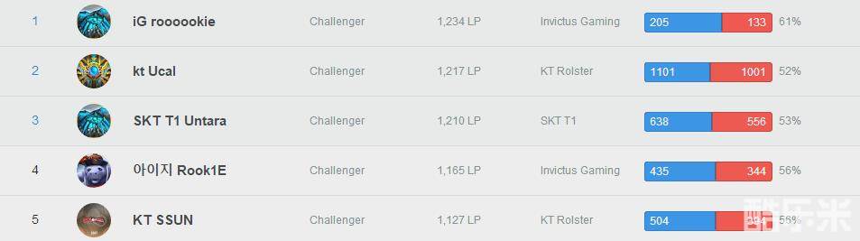 Rookie最近在韩服状态大好,两个账号都打到了韩服前五,分列第一和第四。