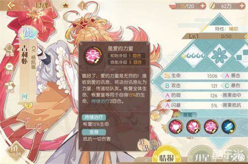 吉利虾拥有着ss的生命,防御、闪避和暴击都有着a,b的攻击力,咱也不指望他输出。做为一个辅助奶妈这个面板完全可以。