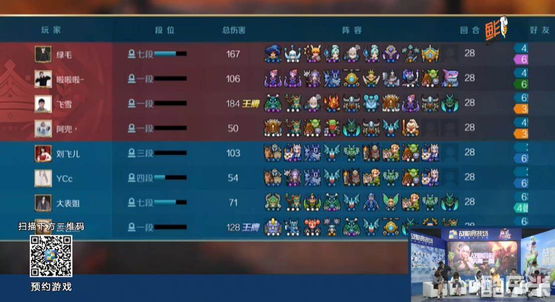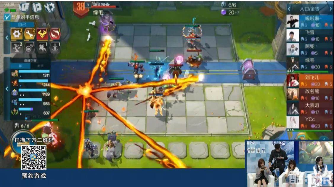 到了最后一轮常规军团,直播现场的气氛顿时严肃起来,似乎两队主播都已进入了“上头”状态,双方都使出了不同于前两轮的套路。刘飞儿在第二回合便率先已合出全场第一个二星旗子,颜值队整体更是牢牢锁定前期优势,一度将双方血量差扩大至108滴血。