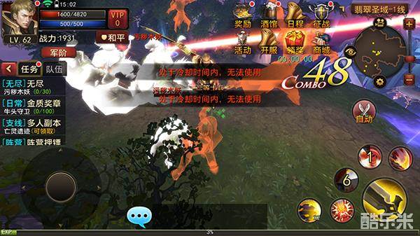 通过点击右下方的五个技能按钮释放对应技能。如果目标处于技能的有效距离外,则会追击到有效距离内再释放这个技能。自动辅助战斗模式下角色会自动攻击、选择和追击敌人。