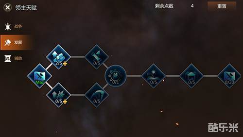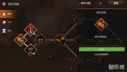 《列王时代》的领主技能共有战斗、发展、辅助有三个分支,玩家可以使用升级时获得的天赋点,自由选择开启相应的天赋技能。当然,想要成为一名合格的领主,选择天赋就不能太“任性”,一套合理的天赋点策略能够让玩家的发展事半功倍。