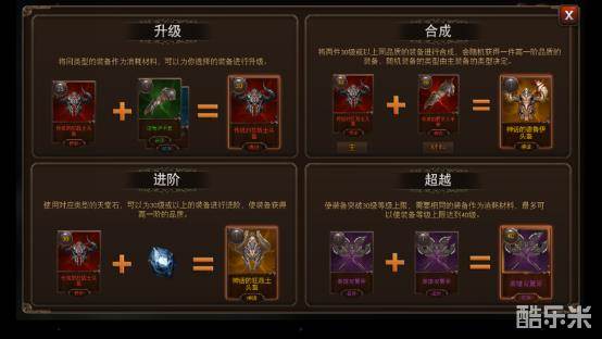 进阶可以将一个最高等级的装备合成为一个品质更高的装备,和“合成”的功能一样,只不过过程中需要用到的物资不同;