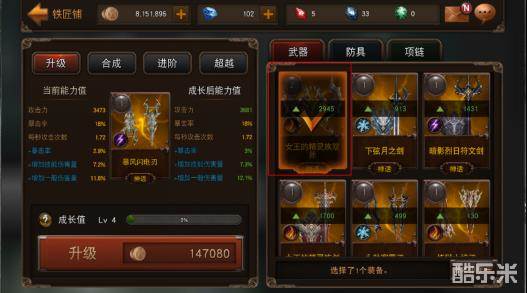 此外还有合成、宝石升级、武器超越等选项,均能够使得玩家的战斗力得到质的飞跃。