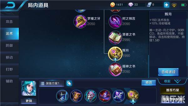 出装思路:秘法之靴性价比较高,第一件推荐出秘法之靴,既能够提高王昭君的灵活性,法术穿透效果也能够提供不错的输出。第二件推荐出圣杯,王昭君是一个靠技能输出的法师,回蓝效果能够避免王昭君蓝耗不够的尴尬局面,法术防御加成也能够在对线法师时,提高自身的防御能力,冷却缩减则能够使其更加频繁的释放技能,更加快速的清理兵线、消耗敌人。痛苦面具的法术攻击以及被动都能够很好的提升王昭君的输出能力,生命值加成也能提高王昭君的生存能力。博学者之怒能够最大化提高王昭君的法术攻击力。虚无法杖的穿透效果配合上秘法之靴以及痛苦面具的穿透,极大的提升了王昭君输出前排的能力。辉月则能够很好的保证了王昭君的生存。