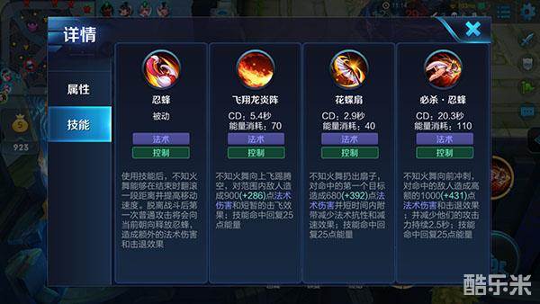 分析:被动技能让不知火舞变得非常灵活,在使用技能后,不知火舞能够在结束时翻滚一段距离并提高移动速度,翻滚的方向需要自己控制。被动提升了不知火舞的机动性,脱离战斗后第一次普通攻击将会向当前朝向释放忍蜂,造成额外的法术伤害和击退效果,让不知火舞的输出能力和控制能力也得到了很大提升。