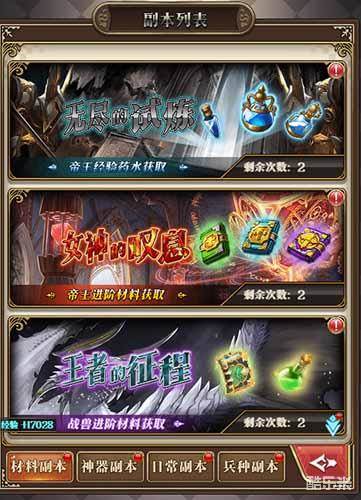 2.不愿意透露姓名的大佬B:重要的事情说三遍:刷副本!刷副本!刷副本!大佬B进采访室一坐下就对我们说:“《空岛幻想》最重要的是什么?刷副本!就是刷副本!”我们通过的关卡越多,后面面对的关卡难度也就越来越难。此时我们需要提升自身以及帝王的战力,才能更好地面对难度更高的关卡。提升角色及帝王的综合实力,我们需要大量的升级及进阶的材料。这个时候,就是我们在材料副本当中大展身手的时候了!材料副本是获取各种升级、进阶材料的主要途径。其中包括了帝王升级材料、帝王进阶材料、战兽进阶材料等多个副本。