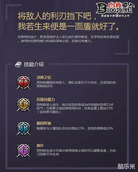 坚如磐石,临危不惧,永远站在队伍的最前线,挡下所有枪林弹雨,为队友吸引仇恨,守护队友直到自己倒下。在《血族》的队伍中,战士就是这样一个百折不回的神级职业,就算你的输出能力异常强大,没有一个可以扛下这些伤害的人,你也终将面临敌人摧拉枯朽的攻击。《血族》11月全新大师卡,超强暗系战士“西利欧”绝美登场,让我们一睹这位金发帅哥的风采!