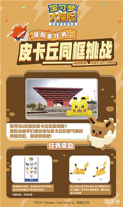 网易正版宝可梦手游《宝可梦大探险》公测火热预约中,即刻登录官网参与预约,开测福利等你领取!精彩线下活动即将亮相上海中华艺术宫(世博会中国馆),巨型皮卡丘邀你同框!