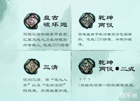 盘古破坏炮:元始天尊可以驾驶盘古对敌方全体单位造成伤害,这是一个高额的范围性伤害技能,如果我们在对战中先手使用该技能的话是可以先行的进行一波血量上面的消耗,然后配合其他友军造成大量的伤害。