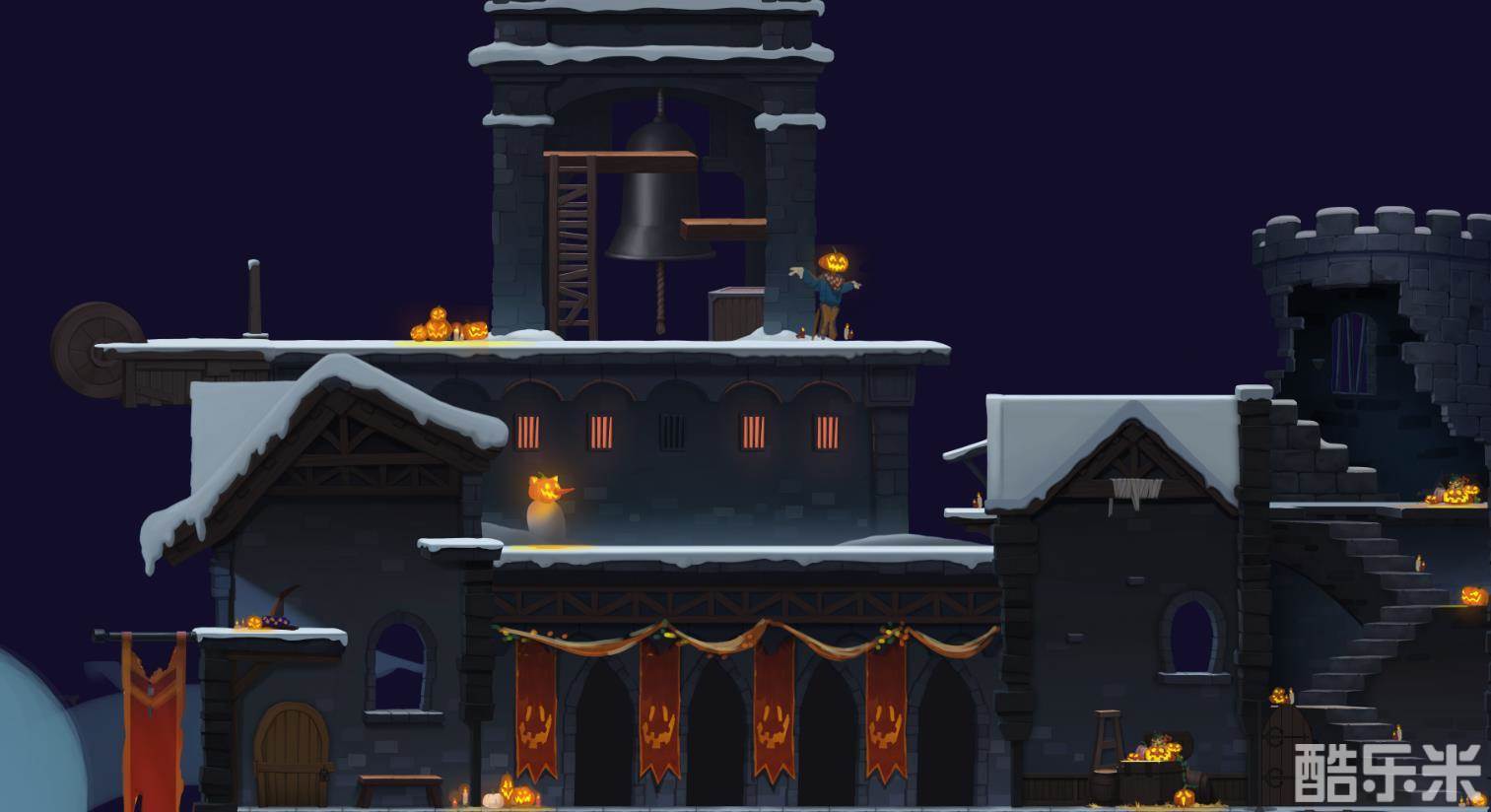 万圣节活动期间,雪夜古堡地图将增添大量南瓜灯,迎接万圣节的到来。汤姆和杰瑞以精湛的技巧和丰富的灵感雕刻了形形色色的南瓜灯,有的插上胡萝卜安放在雪堆上,仿佛变成了南瓜灯雪人;有的与稻草人结合,整蛊效果一流;有的多个堆叠,耀眼黄光给人以温暖感;旗帜上的徽章也被南瓜替代,地图远处,隐约可见女巫乘着扫把飞舞,乌鸦随之翻飞••••••在这万圣节前夜,进入雪夜古堡,开启一场盛大的宴会!