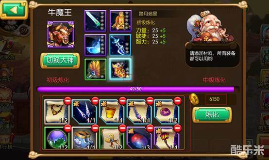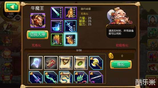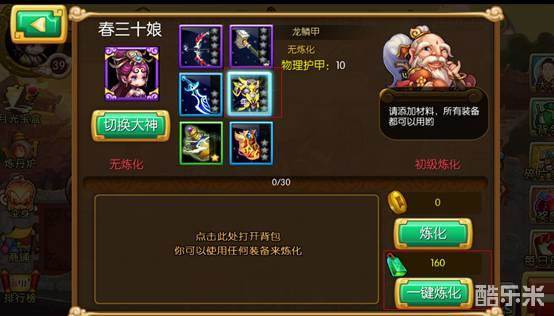 选好大神,并选择大神身上要炼化的装备后,就可以开始炼化材料啦!白色品质的装备是不可以炼化的,所以炼化之前要先挑选好品质较高的装备。