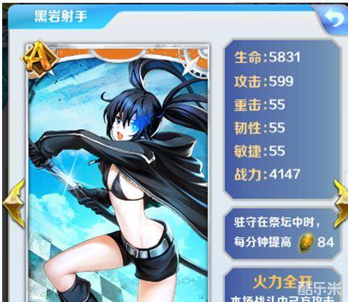 这个时候萌娘卡牌的优势就发挥出来了,一张A级的黑岩射手,升级到金色后,大约可提升宝物700%多的战力,这个时候一个仅有100攻击力的宝物,经过星能、纹章、祭坛、萌娘卡牌这一系列升级后,其战斗力可达到惊人的180000左右。再加上力量源泉固有的10%攻击加成,宝物战斗力妥妥的在200000+。