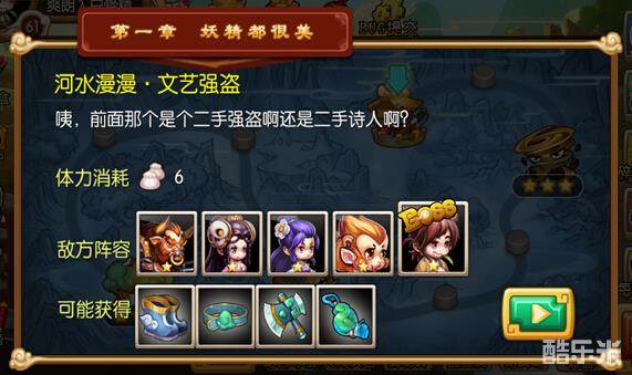1、普通第一章最后一关河水漫漫·文艺强盗,三位敌方大神:牛魔王、紫霞仙子、白晶晶,只要技能放完没杀死,基本都会回复满血。牛魔王和白晶晶的输出很强大,前排很快顶不住。