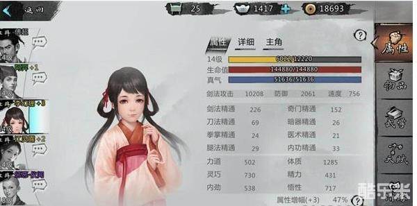 徒弟开局,初始速度都是100,前面选题加20所以是120速度开局。然后不用说了吧,开局大娘,然后小虎,然后摸狗,狗给的画吃掉升4级,速度基本上到150了,可以上水上漂了,然后。先把阿刚切磋了,拿他传家宝后面有用。